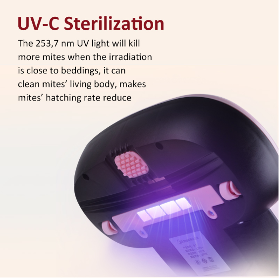 - The 253,7 nm UV light will kill more mites when the irradiation is close to beddings, it can clean mites' living body, makes mites' hatching rate reduce
