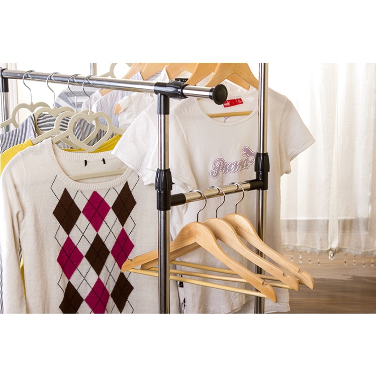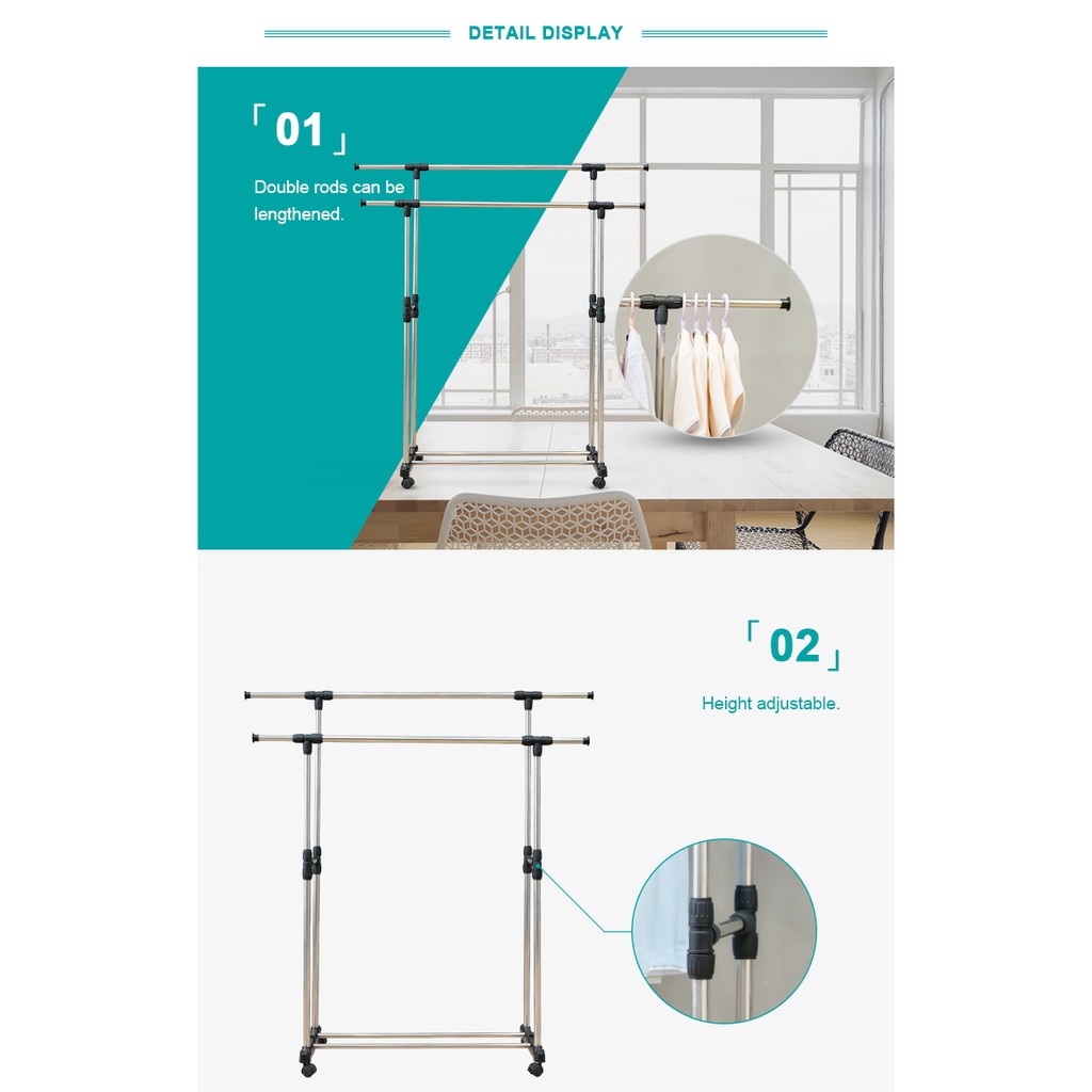 (SG STOCK) Adjustable Single & Double Pole Clothes Rack Stand Drying Rack Clothing Portable Hanging with Wheels