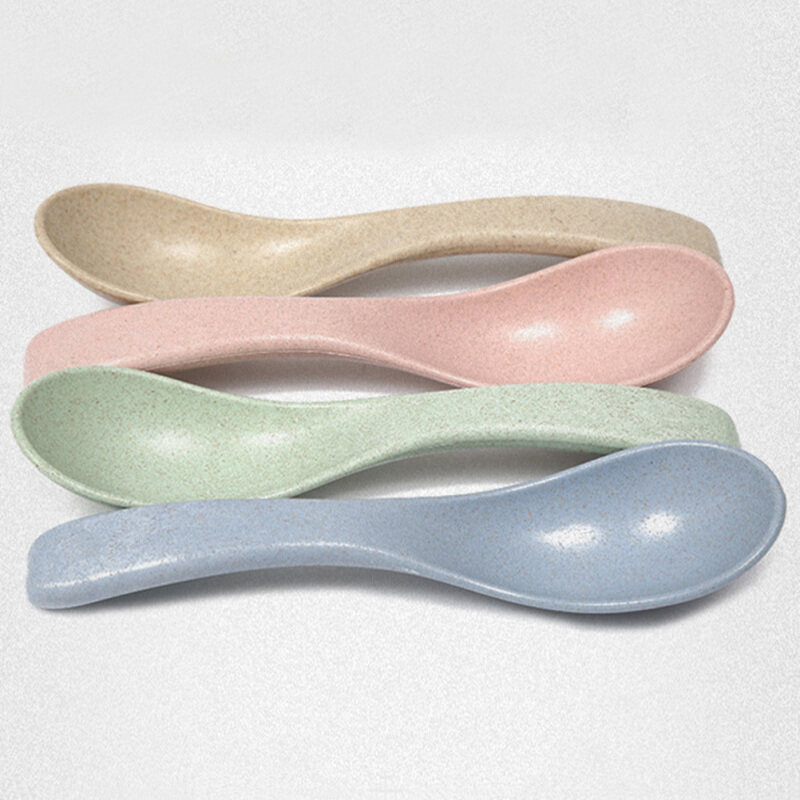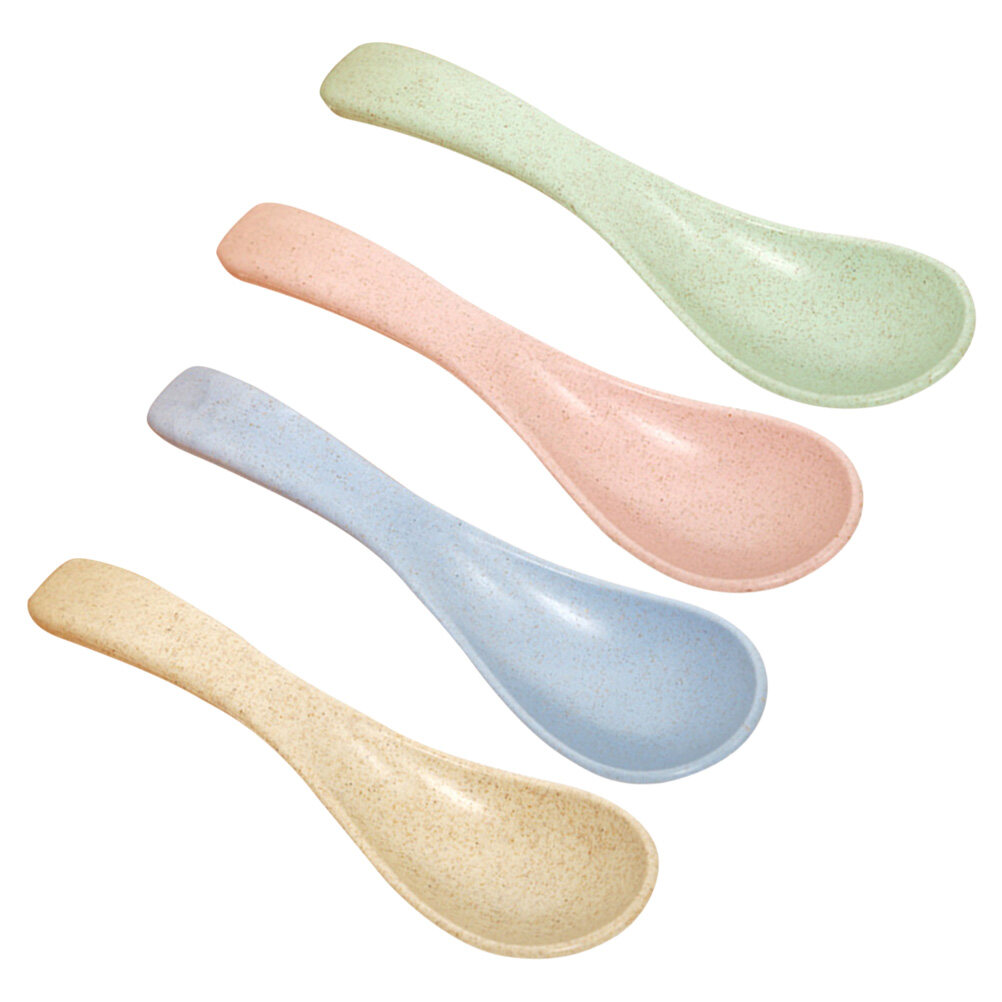 HOMEMAXS 4 Pairs of 4 Colors Wheat Tableware Straw Eating Spoon Rice Bowl Spoon Soup Spoon Children Dining Spoon Eating Spoon Baby Spoon