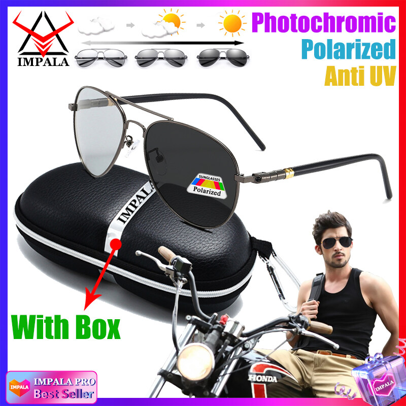 IMPALA PG1836L Fashion Men Polarized Photochromic Sunglasses Anti Glare UV400 HD Lens Metal Frame Driving Fishing Outdoor Soprts Glasses with case