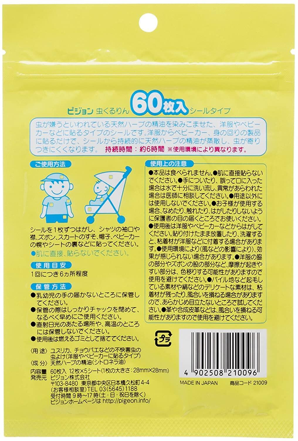 Pigeon Japan Baby Mosquito Repellent Patch For Baby 60 Pieces Value Pack