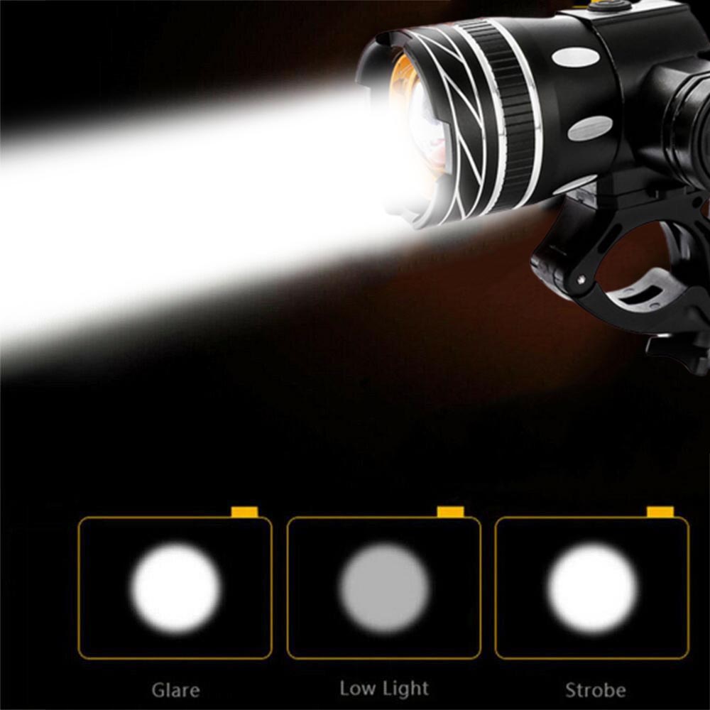 Happybuyner 15000LM T6 LED USB Line Rear Light Adjustable Bicycle Light 3000mAh Rechargeable Battery Zoomable Front Bike Headlight Lamp