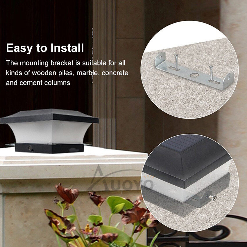 Auoyo 12 LED Solar Lights Pillar Light Outdoor Lighting Gate Door Post Cap Lights IP65 Waterproof Garden Column Fence for Yard Garage Deck Pathway Porch
