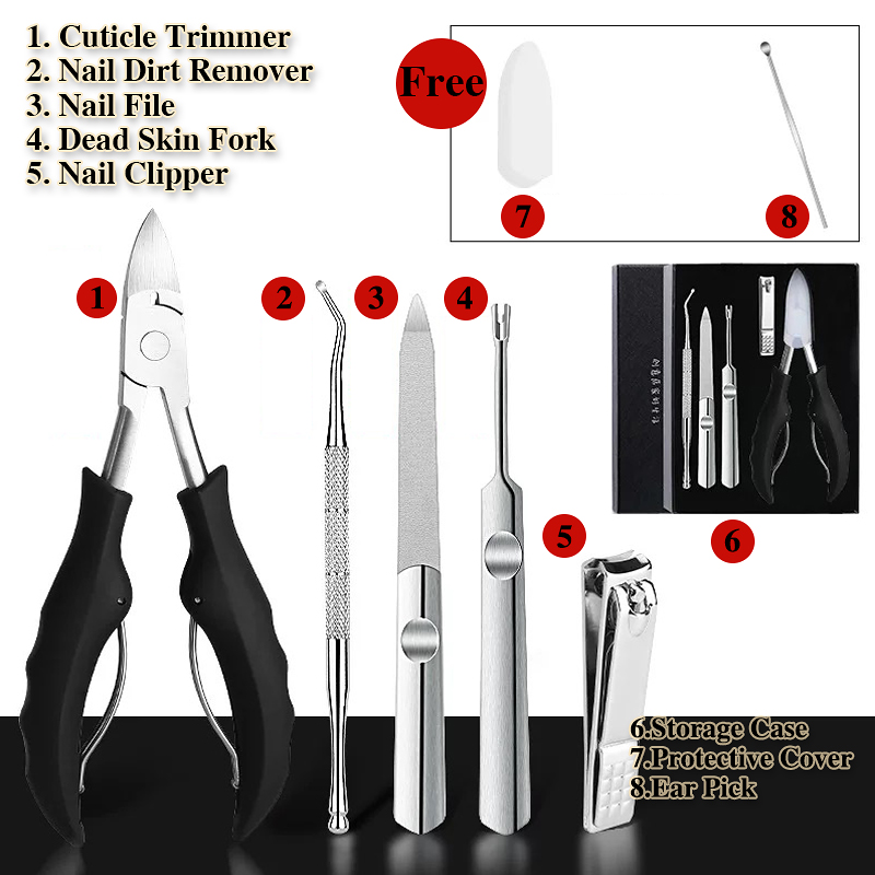 1PCS / 5PCS Nail Clipper for Ingrown or Thick Toenails Cuticle Trimmer Set with Nail File Dead Skin Fork Pedicure Manicure Tools Kit for Fingernails and Toenails Nail Cutter Stainless Steel for Parony