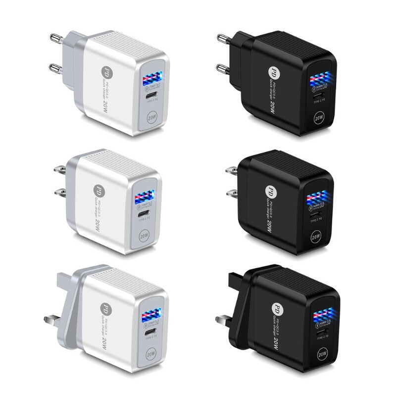 Universal Quick Charge 3.0 PD USB Charger 20w Type C Fast Charger Power Adapter Travel Charging Head US/UK/EU Plug