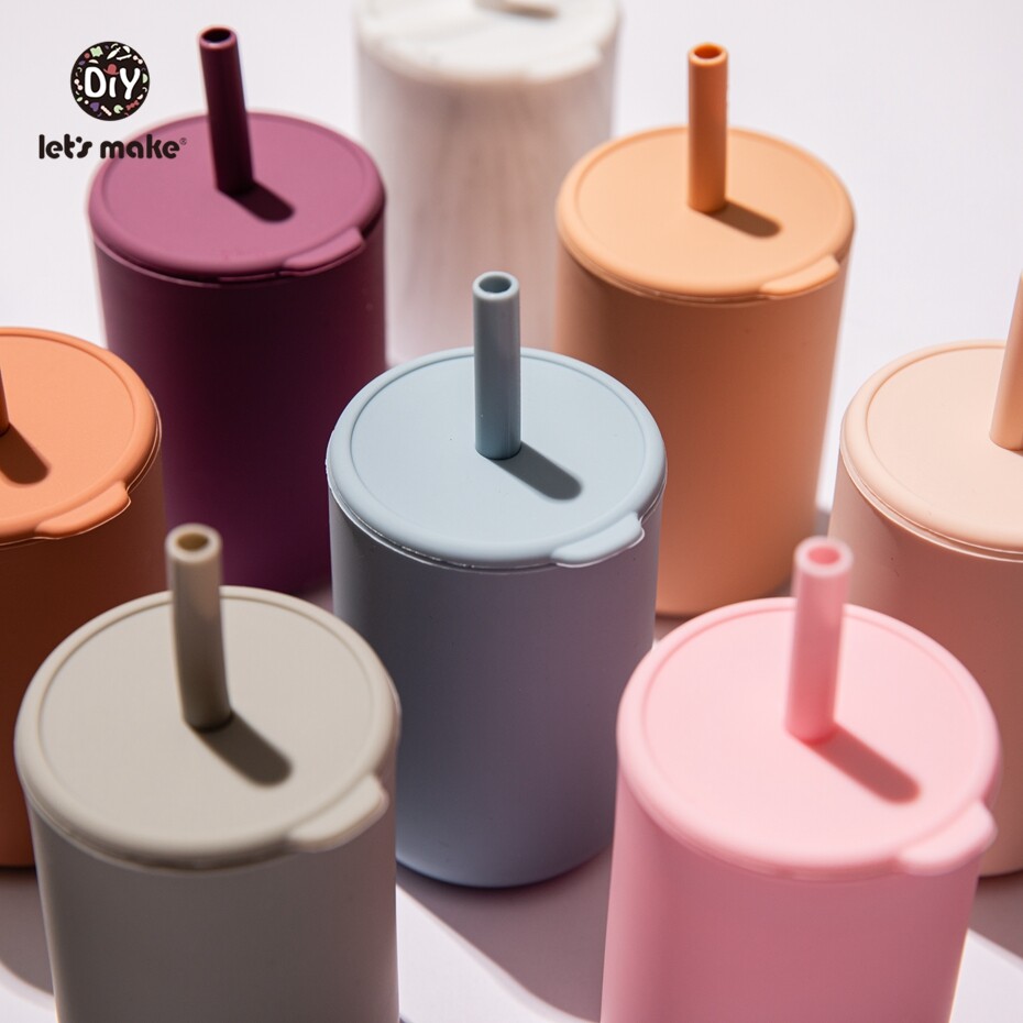 Let's Make Silicone Cup 1PC High Temperature Disinfection Sippy Cups with Cover and Straw Baby Feeding Stuff