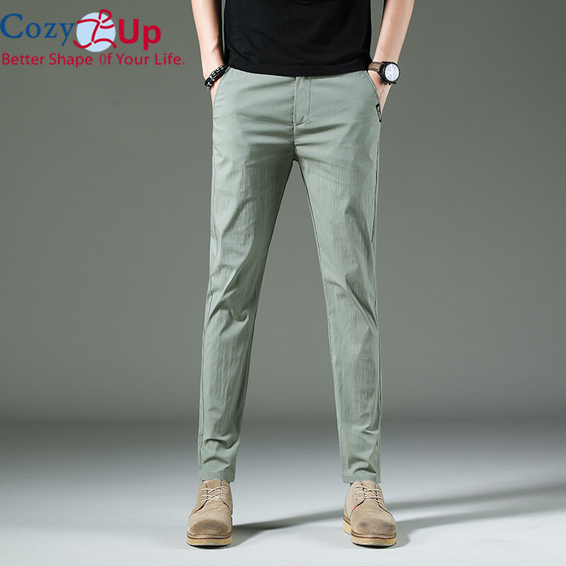 Cozy Up Men Long Trousers Solid Color Casual Straight Cotton Blended Soft Slim Fit