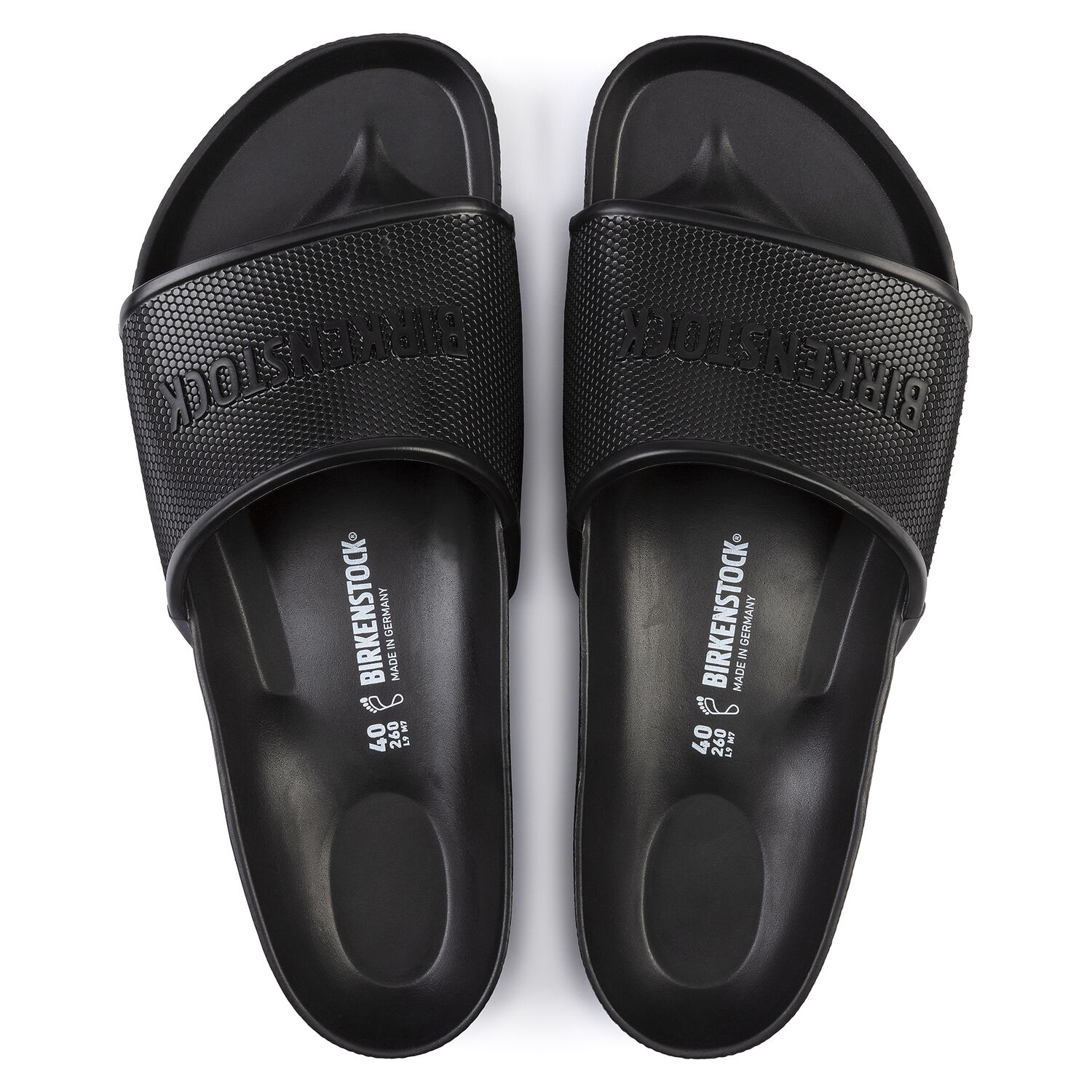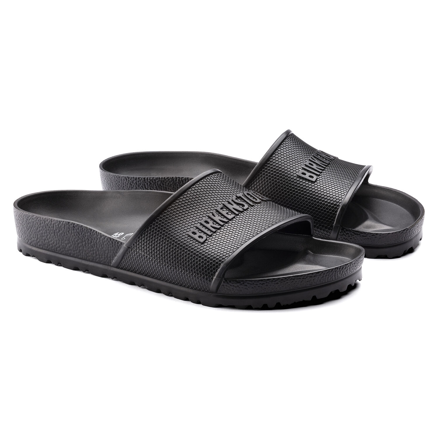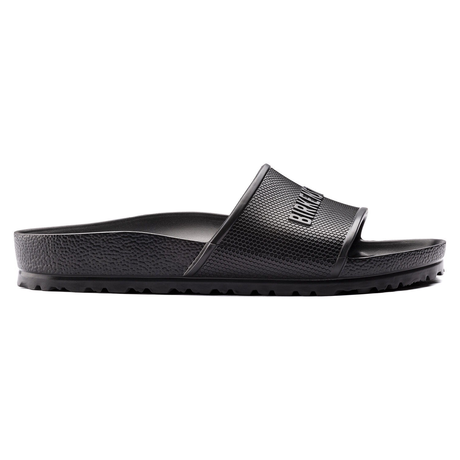 The BIRKENSTOCK Barbados is a sporty mule with a hexagon pattern and logo lettering. It’s perfect for anyone who is looking in particular for function and comfort. Modeled on the cork sandal, this sandal is made from especially light and flexible EVA. This high-quality, odor-neutral synthetic material which has been tested for harmful substances is shock-absorbent, waterproof, and skin-friendly. It’s therefore perfect for wearing at the beach, in the garden, or in wellness and spa areas.