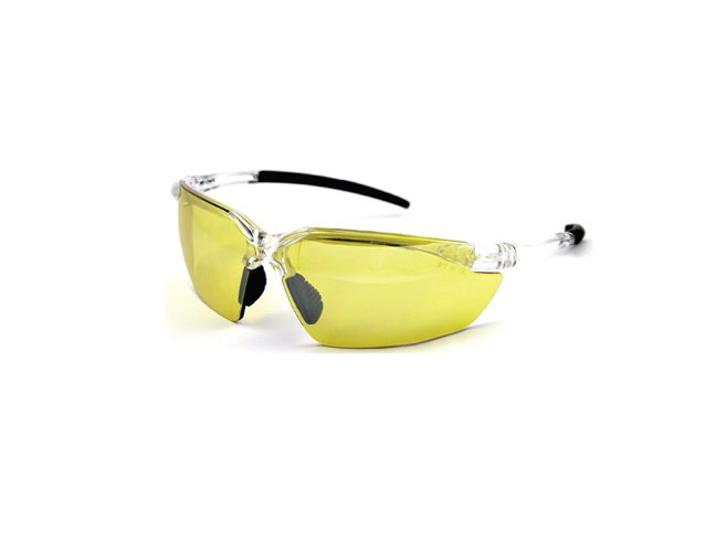 Product Description:Steve & Leif's Standard Safety Glasses made of Polycarbonate lenses are highly resistant to impact and anti scratch. Designed to be lightweight, nylon frame, rubber non-slip nose pads, side temple pads provide secure fit and all-day comfort. Your excellent choice for a pair of safety glasses to protect your eyes from exposure to hazardous working environment.Features:Stylish fit for everyday wearerDesign, lightweight, comfortableFlexible temple and side temple pads for better fitAll lenses provide UV protectionGreat for use indoor or outdoor work applicationsTested and complies with international safety standards (CE EN166 + UV400 + ANSI Z87.1)Made in TaiwanAvailable in Black, Blue, Clear, Light Silver, Silver, YellowITEK Pyramex Safety GlassFEATURESSoft integrated nose piece.Lightweight, frameless protection is ideal for all-day wear.Soft dual injected rubber temple tips provide non-slip comfort.9.75 base curve lens provides excellent side protection.Scratch resistant polycarbonate lens provides 99% UVA/B/C protection.Passes MIL-PRF 32432 High Velocity Impact Standards.Lens TechnologyAmber Lens: Commonly used in indoor, low light applications. Enhances contrast.Visible Light Transmitted --- 380-780nm - 89%UVA, UVB Blocked --- 200-380nm - 99%Blue Light Blocked --- 400-700nm - 75%IR Blocked --- 780-2000nm - 18%Amber Lens with Amber Temples (S5830S) Infinity Blue Lens with Infinity Blue Temples (S5860S)