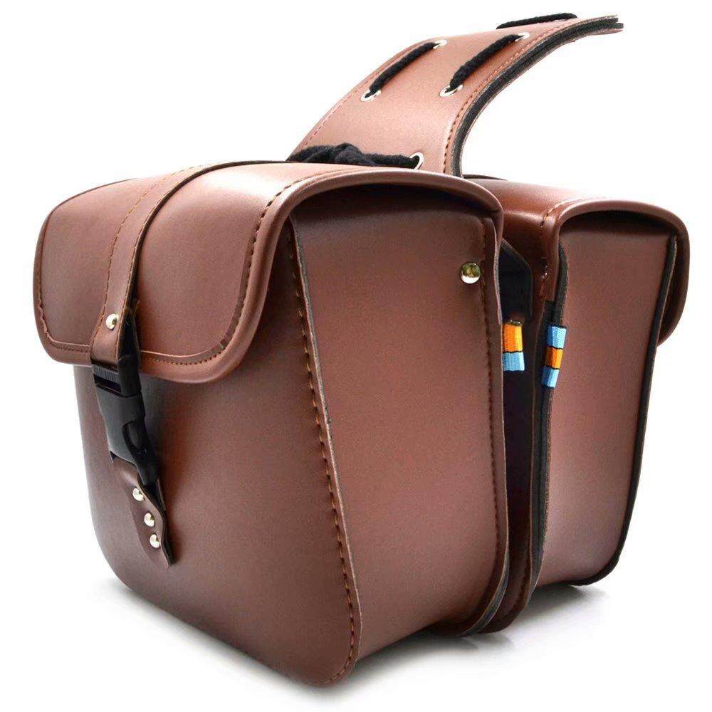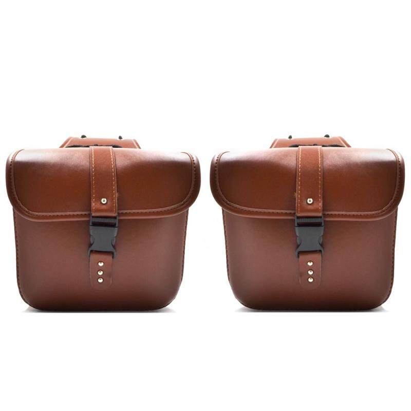 【25 x 12 x 24cm】(2pcs) Leather Motorcycle Saddle Bag Waterproof PU Leather Side Bag Luggage Tool Storage Pouch For Harley Sportster Softail Honda Suzuki Yamaha Cruiser