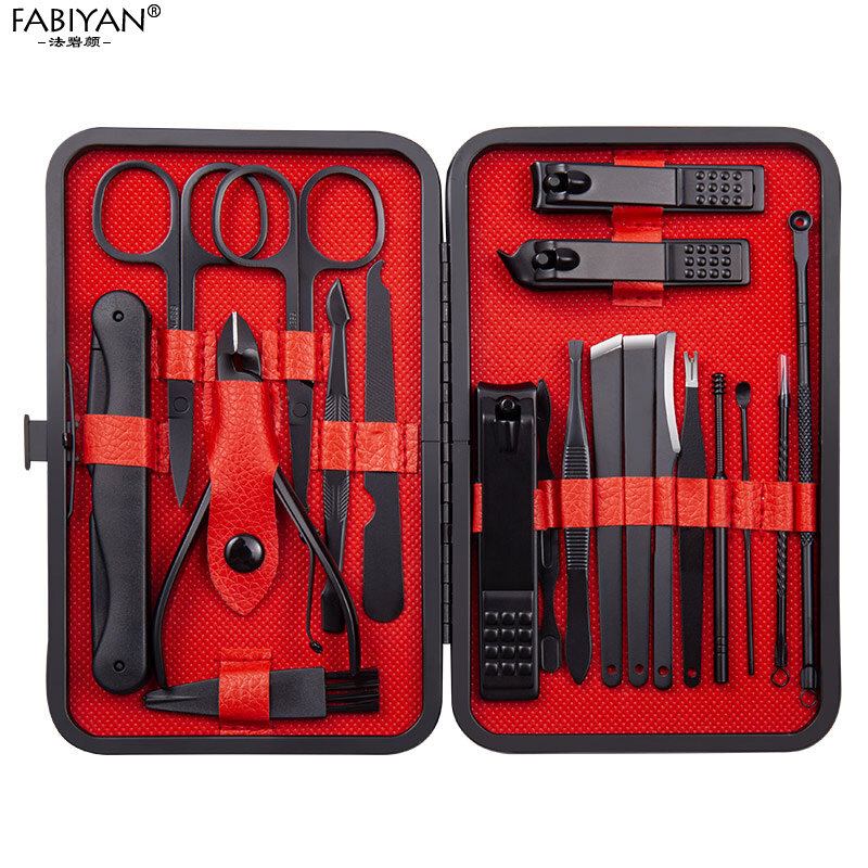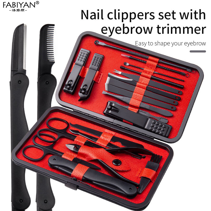Manicure Kits 18/20/26 Pcs Stainless Nail Art Tools Kits Steel Nail Clipper Cutter Trimmer Nail File Scissor Ear Pick Grooming Kit Manicure Set Pedicure Toe Tools Use For Hand Foot Face