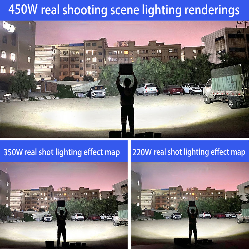 350W: Solar panel: 350*350mmThe lamp body: 321 * 263 mmBattery capacity: 30000mah Lighting duration: 8-24 hours