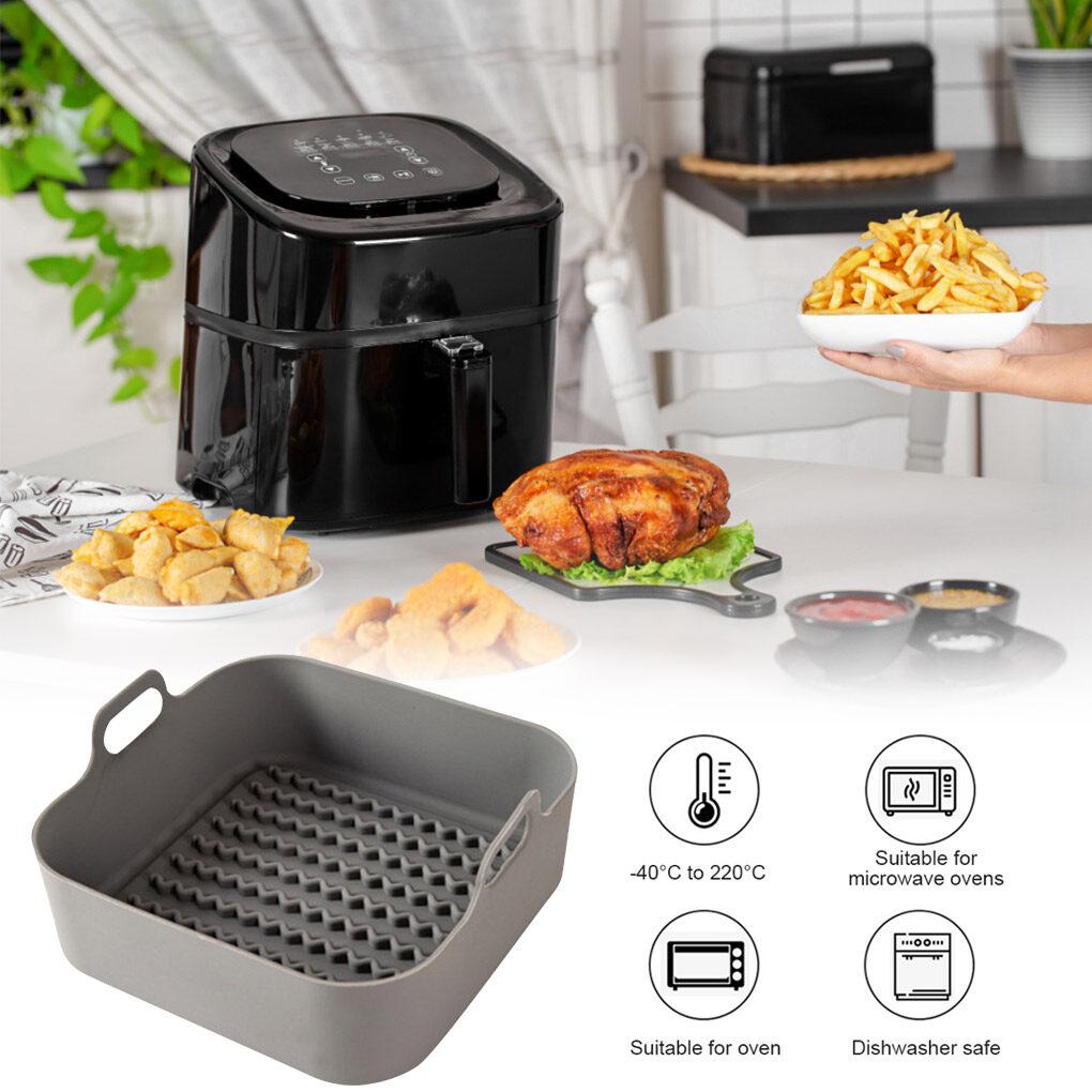 -- Silicone air fryer pot is heat resistant and safe, with hollow separation design, oil separation and anti-permeation.