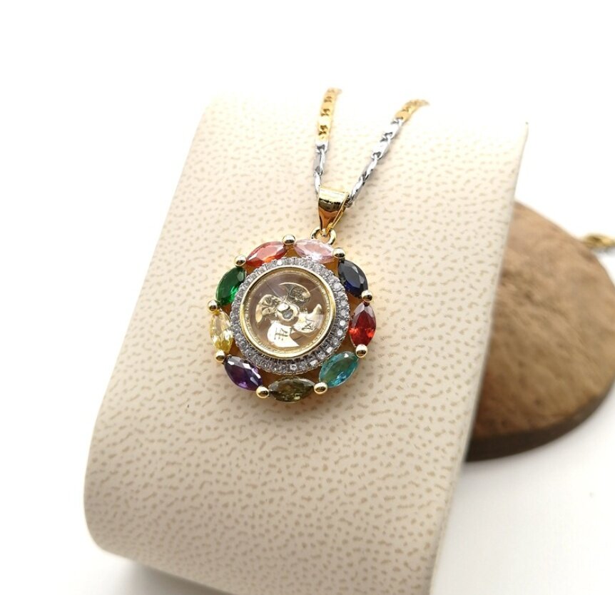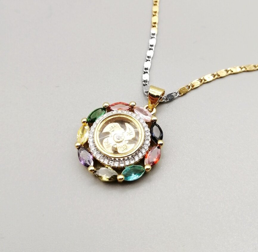 Thai Lucky Windmill wheel Amulet Powerful Enhance Good Fortune adjustable Gold Silver Necklace