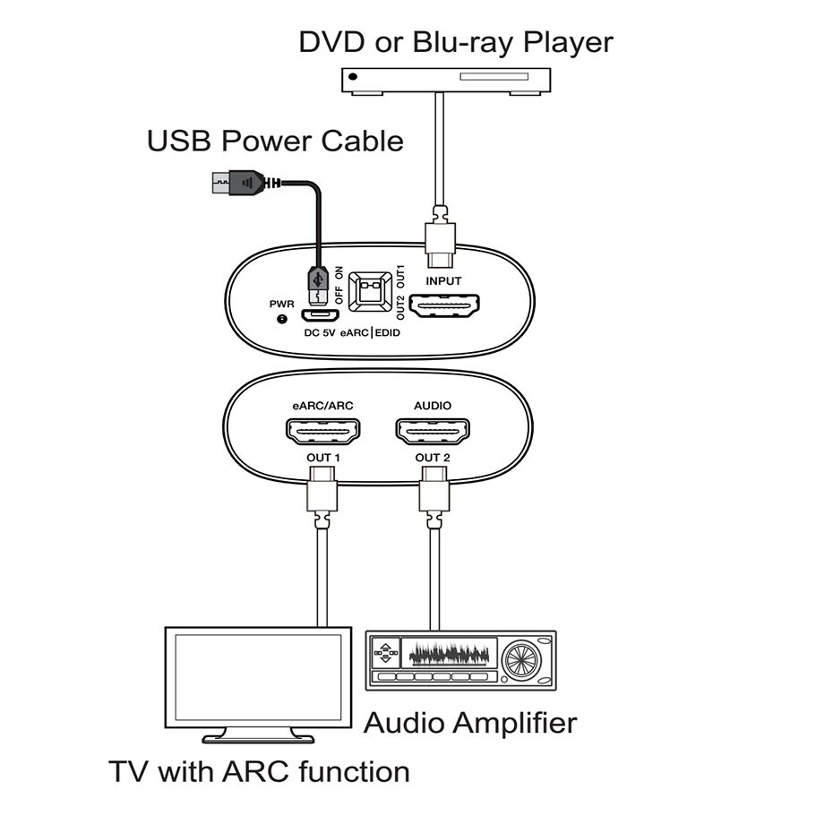 • Support eARC/ARC audio (from TV) extraction to HDMI-compatible audio output.