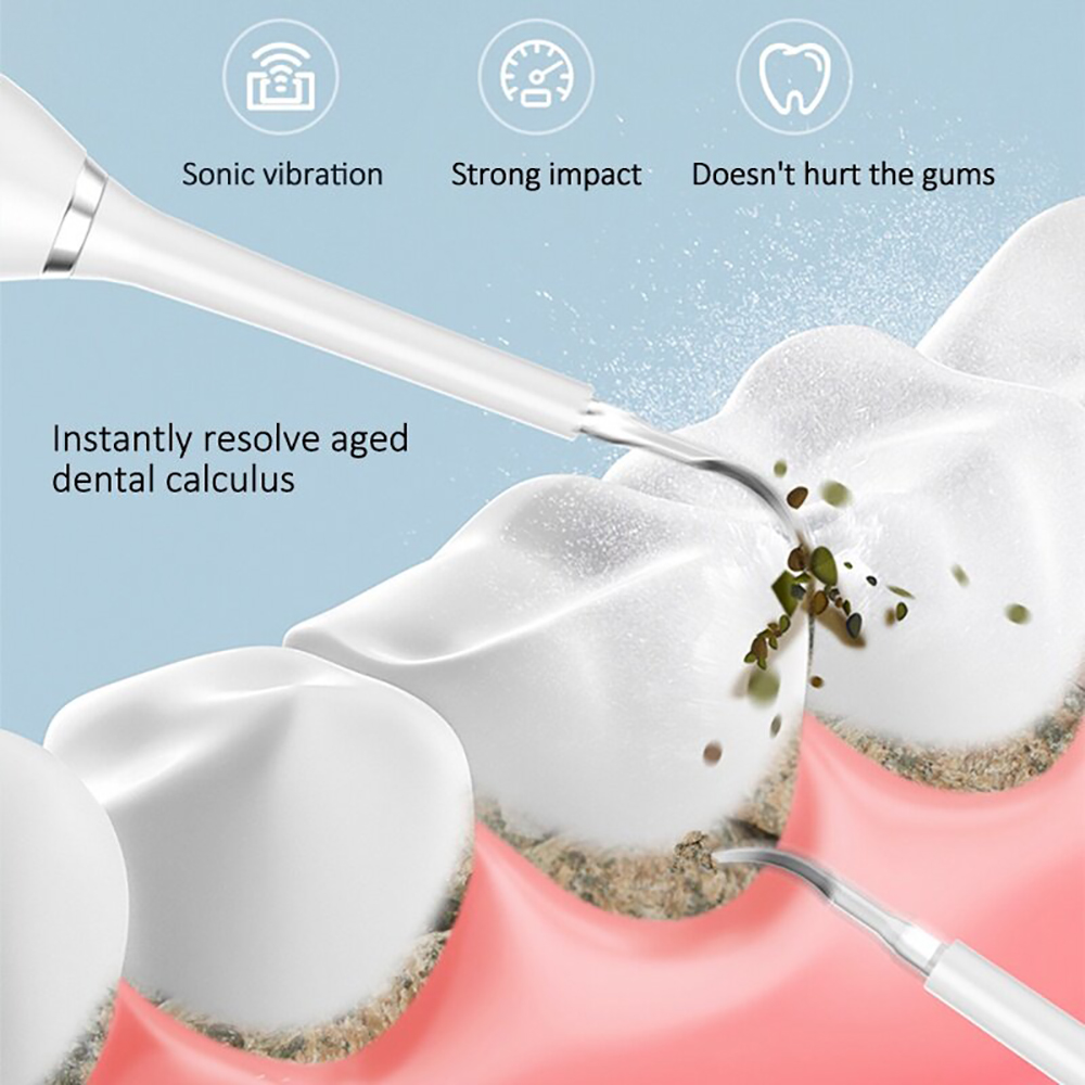 Sonic vibration technology, 30000 times per minute high-intensity frequency, effectively smashes the stubborn calculus, reduces the damages to the enamel and gum, which may be caused by manual dental tools.