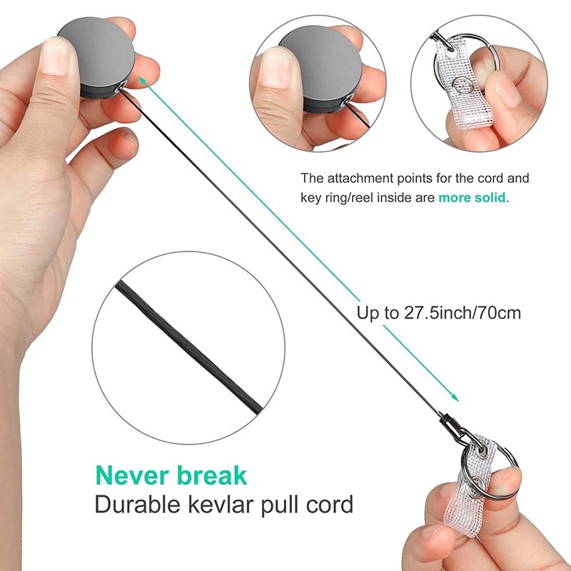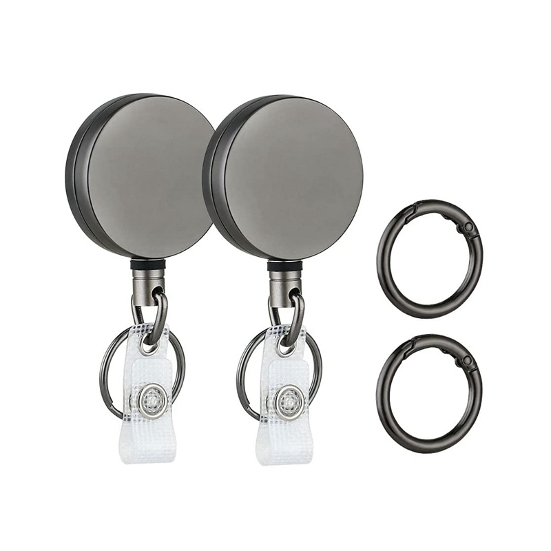 2 Pack Heavy Duty Retractable Badge Holder Reels, Metal ID Badge Holder with Belt Clip Key Ring for Name Card Keychain