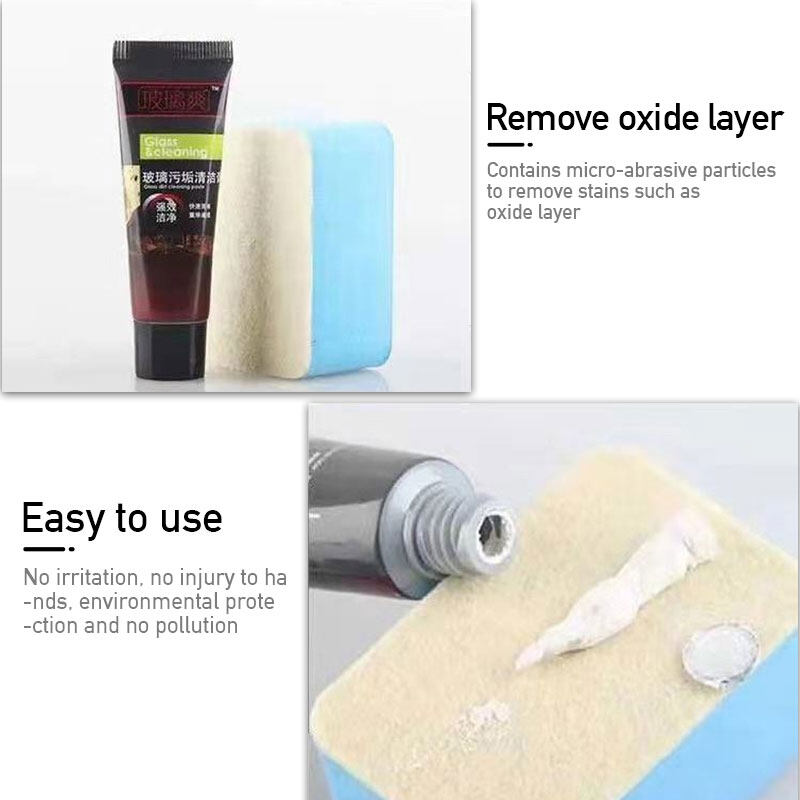 1. It contains special grinding particles and produces chemical reaction with the glass. The oil stain and stain on the glass are taken away through grinding operation. At the same time, repair the gap on the glass surface and protect the cleanliness of the glass surface again. The effect is lasting. This product can remove the oil film in 10 seconds, with small volume and no gap.2.Easily remove nine stains, paint / resin / shellac / oil film / coating / asphalt / bird droppings / rain tracks / scratches, etc.3.Wash the sand particles on the glass surface, take the product and rub it on the glass with a sponge brush. Finally, clean it with clean water and wipe the glass dry.It is easy to use and no construction is needed.4. If there is oil film on the front window, it will seriously affect the driving safety, because the eyes are seriously blocked. If the road condition is not clear, pedestrians in front are easy to cause traffic accidents. You need a cleaner that can remove the oil film to help you eliminate the hidden driving risk.
