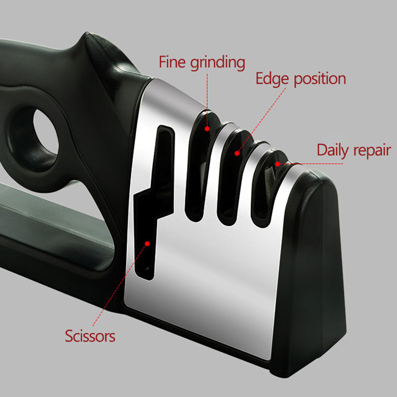 3 gears with one emery mouth/muti-tool applicable.It is suitable for daily sharpening.This step must be done to ensure that all burrs are removed with light force.The knife should be placed vertically in the "rough sharpening mouth",the operation is the same as above.