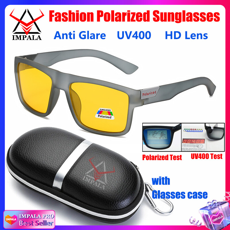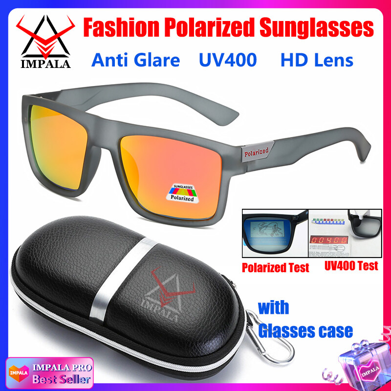 IMPALA PG1660L Fashion Men Women Polarized Sunglasses Anti Glare Driving Fishing Sun Glasses for Men Korean Style Black Spectacles UV400 Lens with Glasses Case