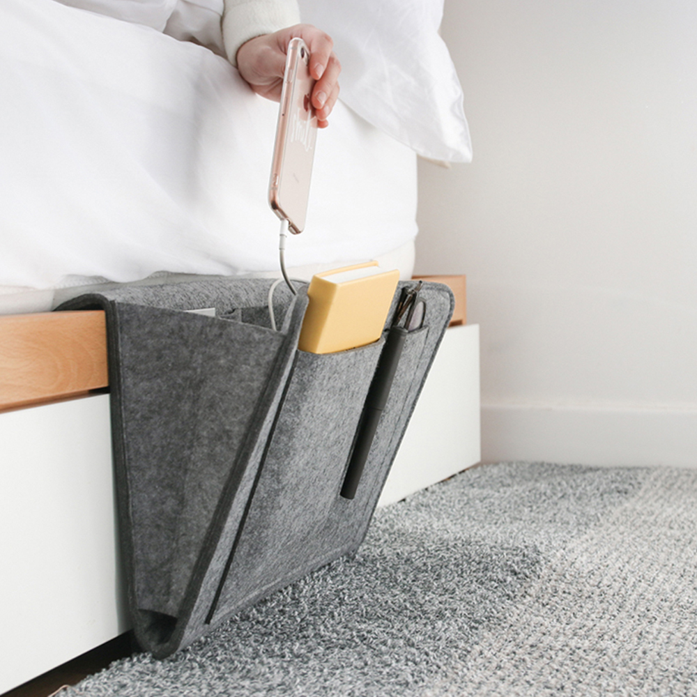 Fyodor Felt Organizer is a handy bedside storage organizer for your phone, laptop, e-reader, tablet, books, and remote controls,all within easy reach and ready for quick use.