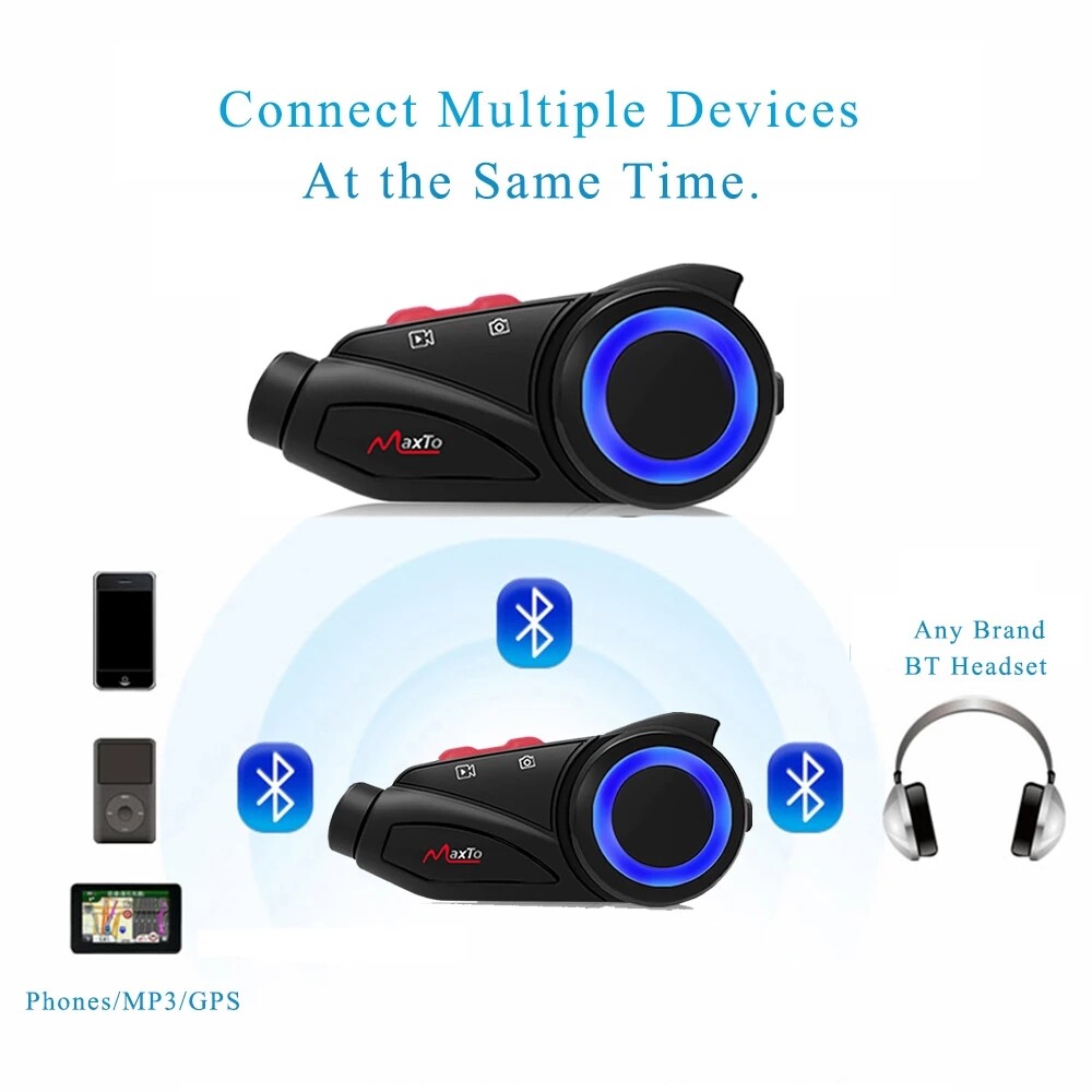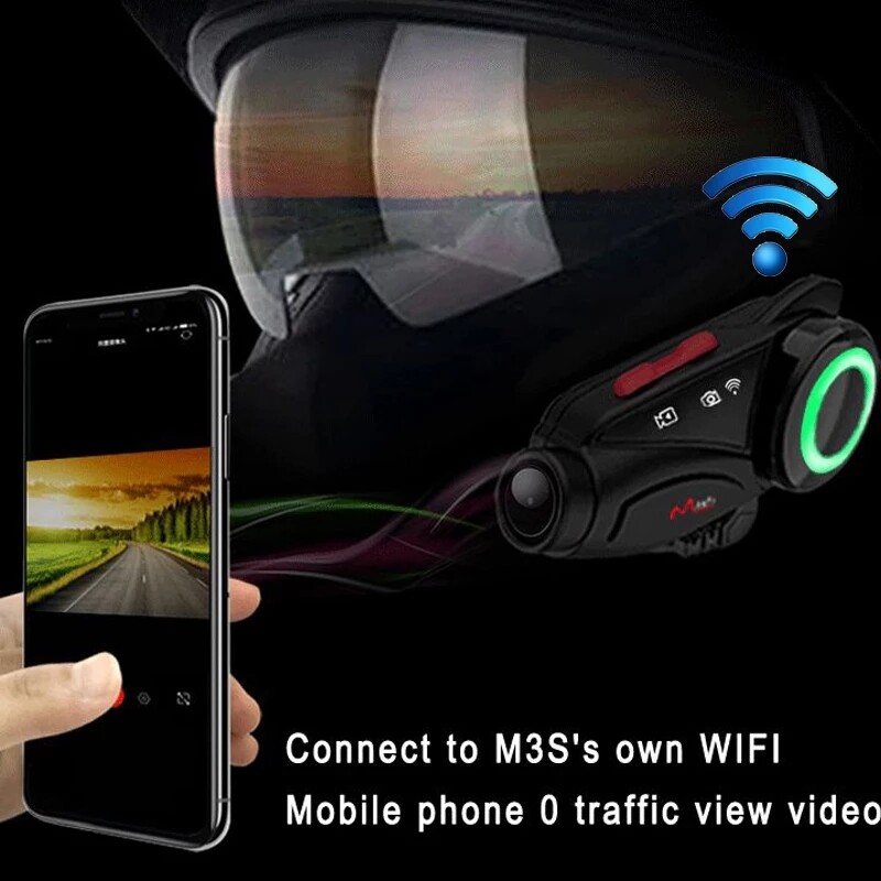 Maxto M3S Motorcycle 1000m Group 6 Riders Bluetooth Helmet Intercom W/WiFi Video Recorder Waterproof 2K 1440P DVR Dash Cam