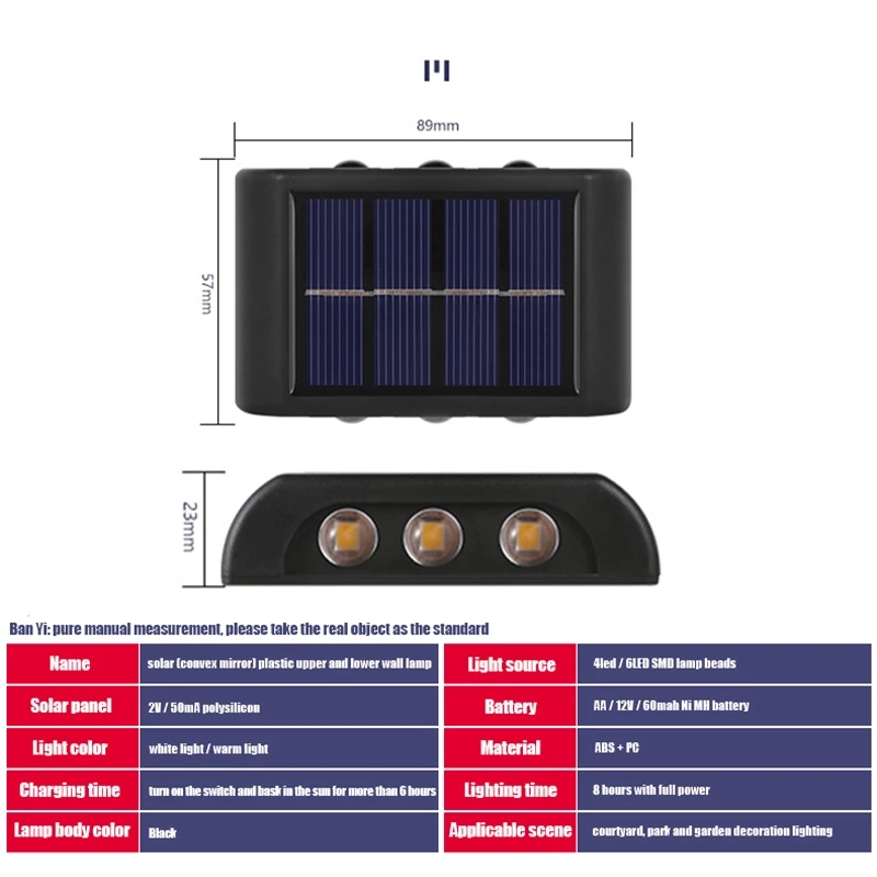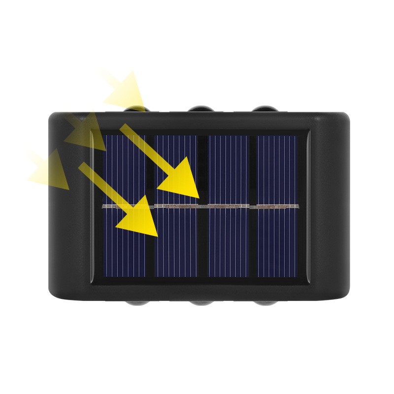 Solar outdoor home wall lamp, with up and down lighting design, creating attractive light and shadow.