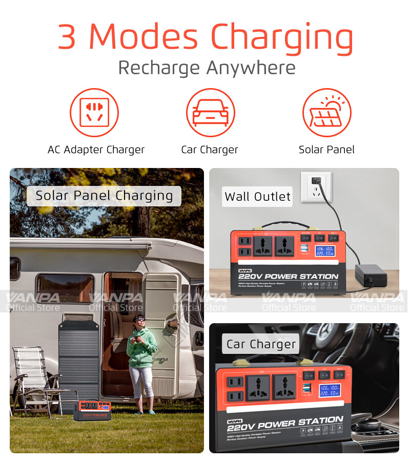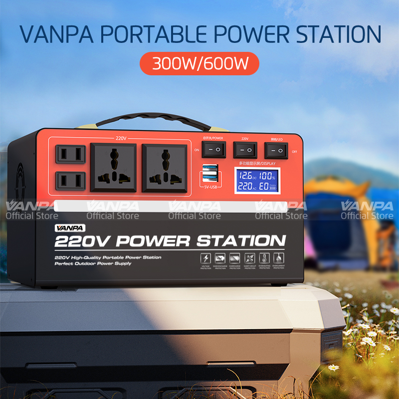 VANPA Portable Power Station 300W/600W AC 220V Output Large Capacity Battery Powerbank For Camping Emergency Backup Power