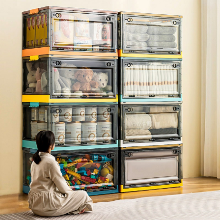 Heighten 52L/82L Foldable stackable Organizer 2/4 side door open storage box