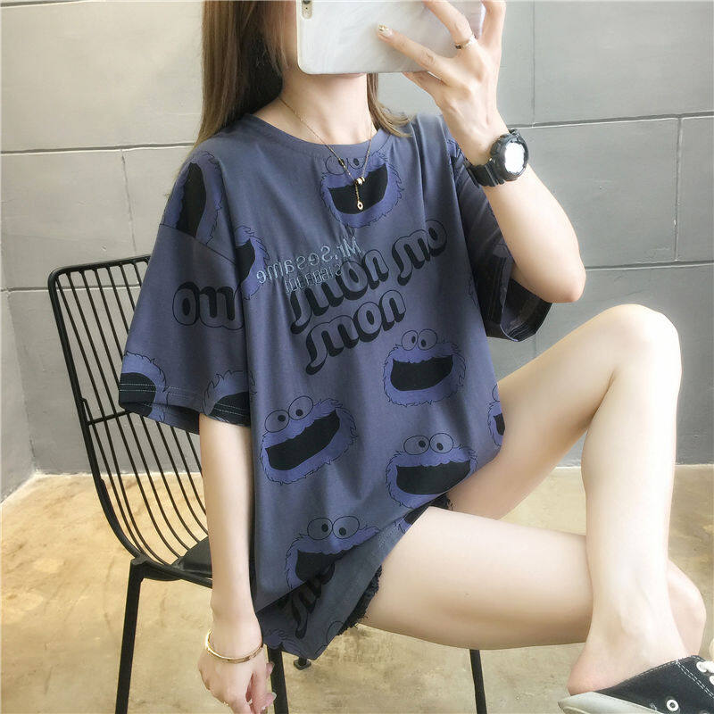Korean Version Women Short-sleeved T-shirt Women Plus Size Loose Round Neck Casual Top