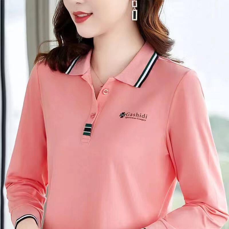 100KG Fat Girl Can Wear Spring and Autumn Fashion Light Green Casual Sport Long Sleeve Women Polo Shirt Loose Plus Size Lapel Blouse Lady Shirt Polo collar T-shirt
