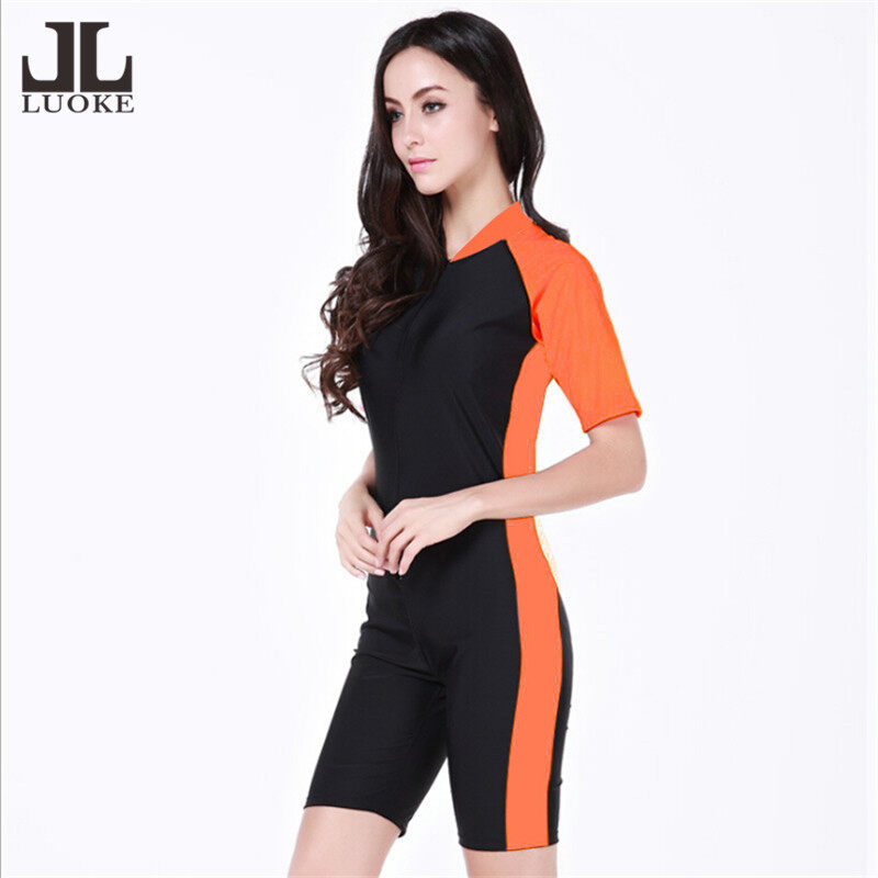 Luoke new Summer Short Sleeve Swimwear One Piece Swimsuit sunscreen diving suit For Women tight 4 Colors