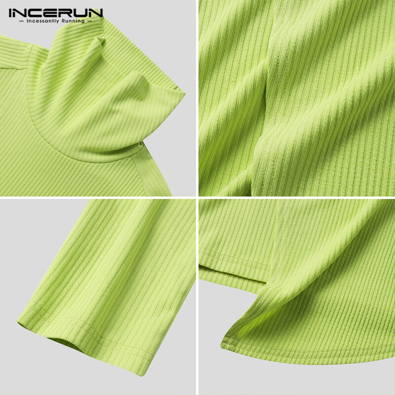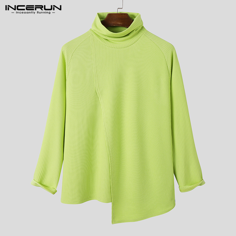 [Perfectly] INCERUN Men's Fashion Versatile Turtleneck Irregular Patchwork Long Sleeve Sweater (Casual Wear)#3