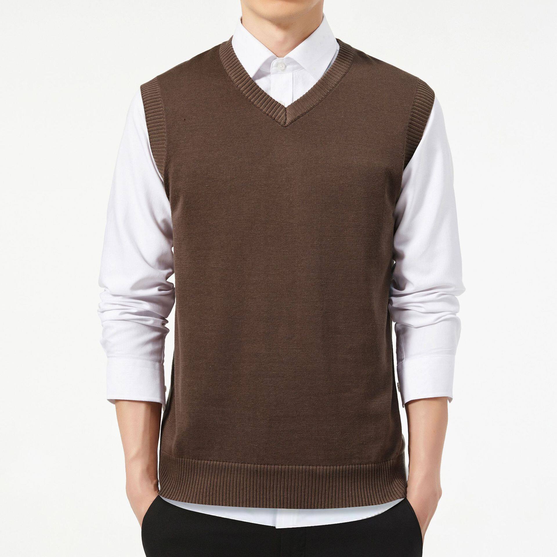 LUX ANGNER Sweater Men 100% Cotton Solid V Neck Vest Sweaters Men Fashion Knitted Sleeveless Pullover Sweater Casual Men's Clothing