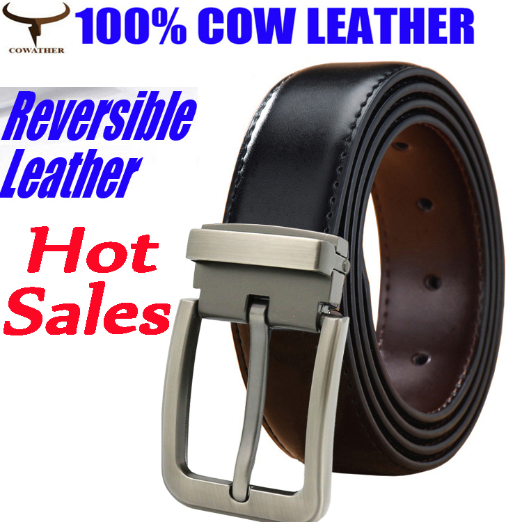 COWATHER Men Reversible 3.3cm Leather Casual belts with Genuine Leather Classic Belt for Men Dress Fashion Everyday Sport belts. One Belt Double-sided Colors Rotated to wear