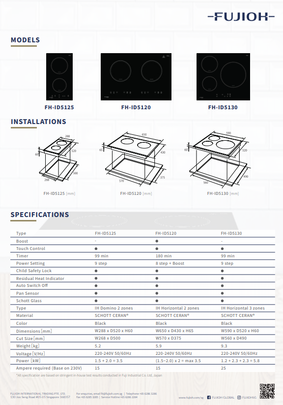 FUJIOH FH-ID5125 30CM 2 ZONE INDUCTION HOB WITH TOUCH CONTROL