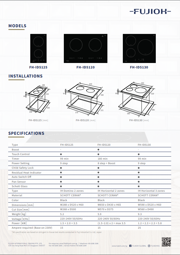FUJIOH FH-ID5120 65CM 2 ZONE INDUCTION HOB