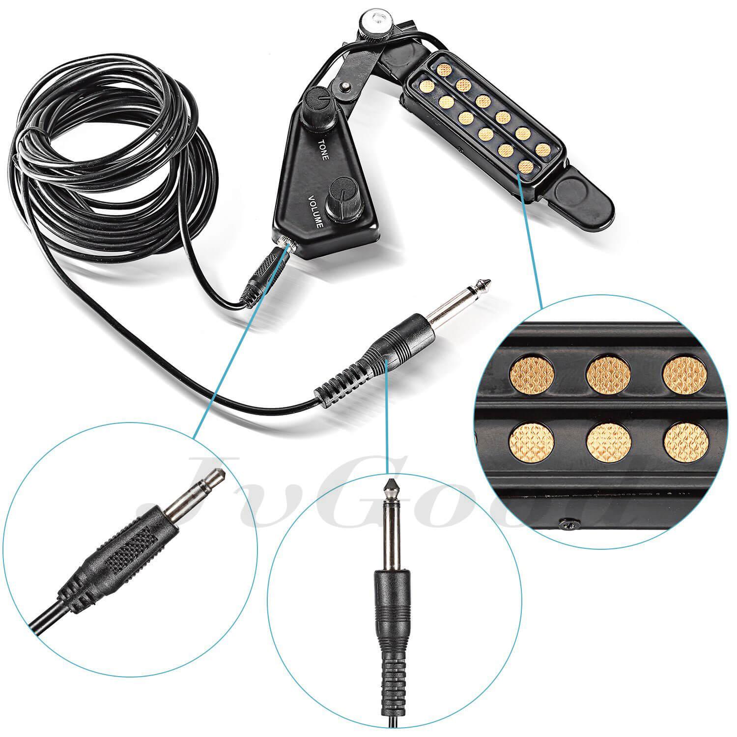 JvGood 12-hole Acoustic Guitar Sound Hole Pickup Magnetic Transducer with Tone Volume Controller Audio Cable