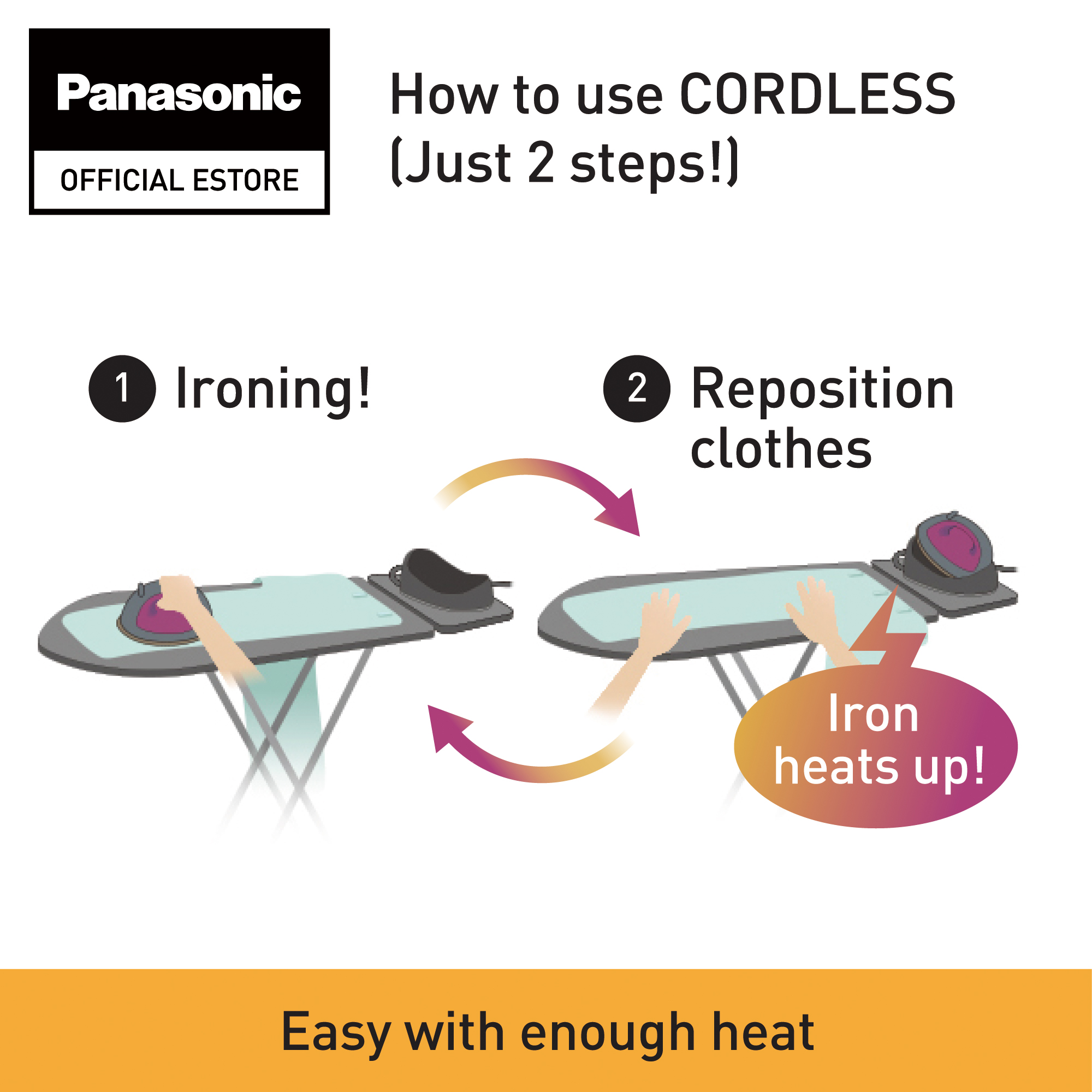 Smooth glide with CORDLESS and Multi- Direction Soleplate