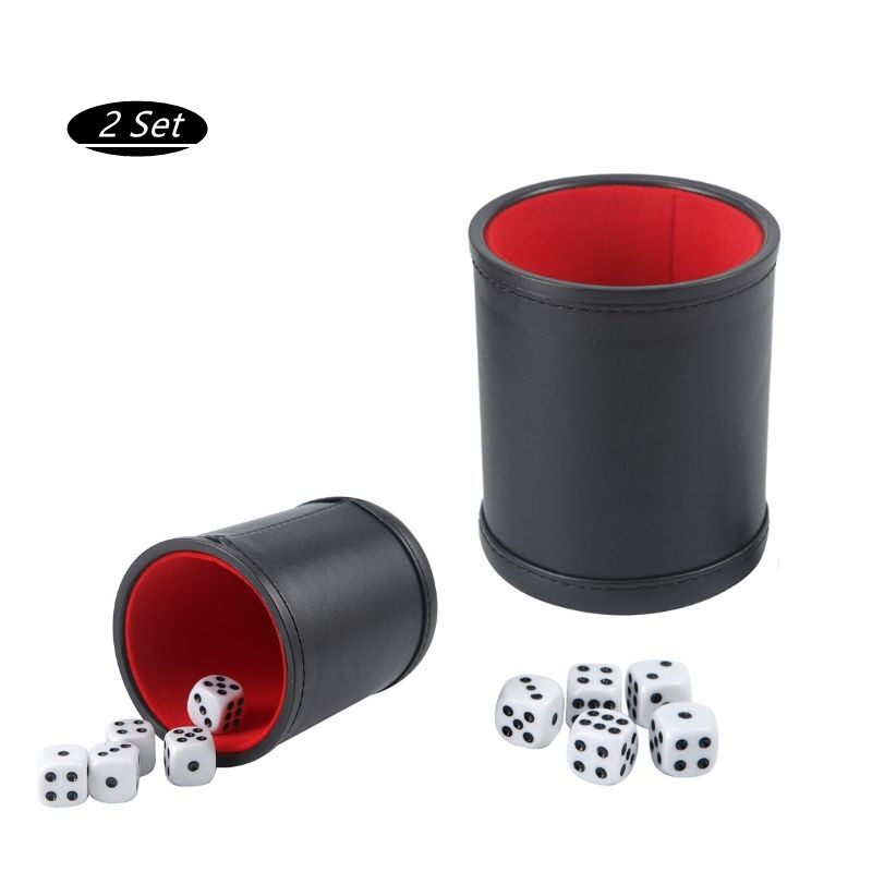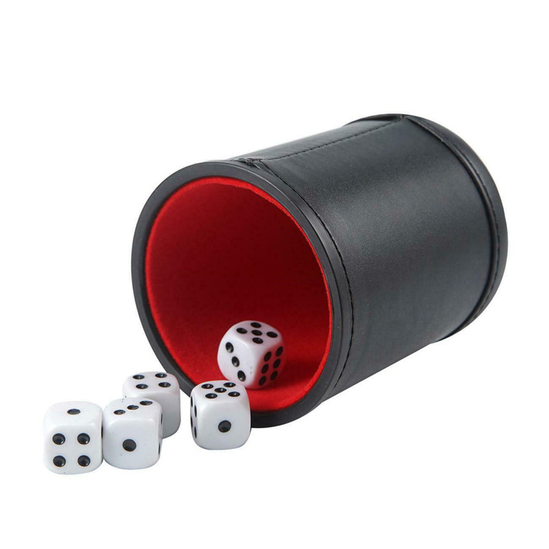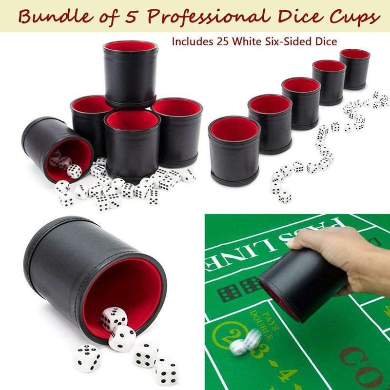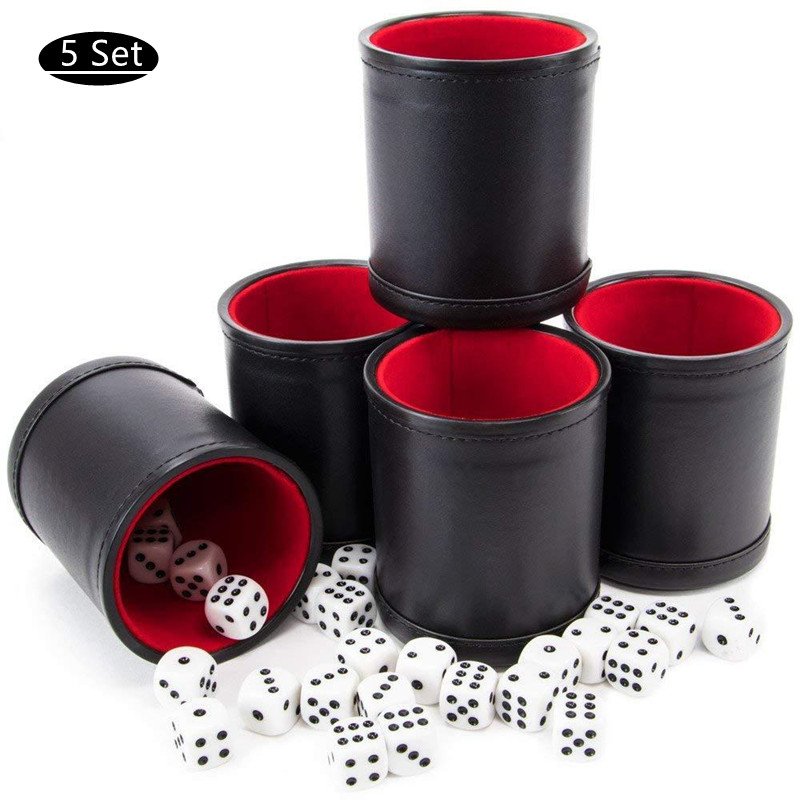 【Ready Stock】5pcs/set Professional Dice Cups W/ 25 White Six-Sided Dice Quality Bicast Leather
