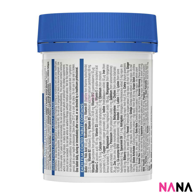 New look and improved formula! With today’s busy lifestyles, a little support can really help you reach for your goals. Swisse Ultivite Men’s Multivitamin is specifically tailored for men’s nutritional needs when dietary intake is inadequate and supports immune health, energy production, and healthy muscle function. This new and improved premium quality formula is now boosted with: