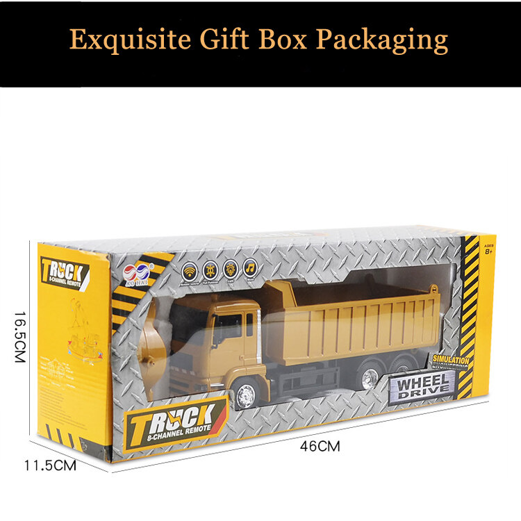 Bafada【Ready Stock】8-Channel USB charging RC cars RC Dump Truck 2.4Ghz Remote Control RC Construction Vehicle Toys for children boys Xmas birthday gifts yellow color RC Engineering truck model Beach t
