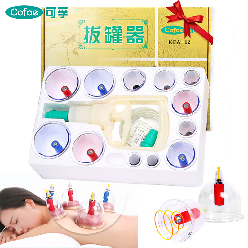 Cofoe 12pcs Vacuum Cupping Therapy Set Body Cup Scraping Massage Body Acupuncture Magnet Acupressure Cup Pumping Suction Kit Cupping Rod Cups Removal Full Sets