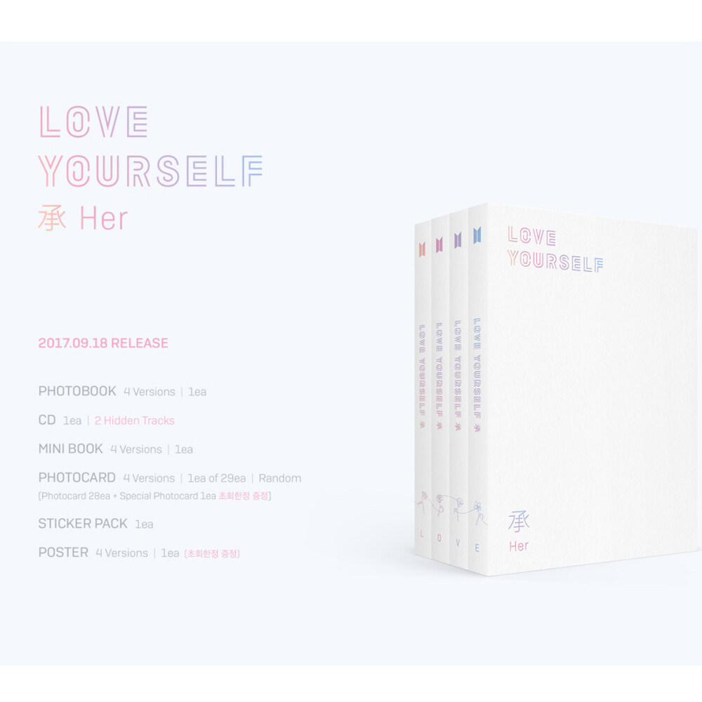 BTS 5th Mini Album Love Yourself 承 'HER' version L +Incl. One Random BTS Photocard