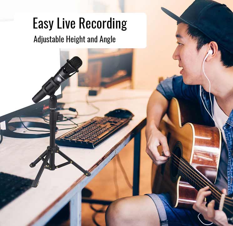 eDSLRs Foldable Desktop Table Microphone Extendable Tripod Stand Holder with Mic Clip for Meetings Live Zoom