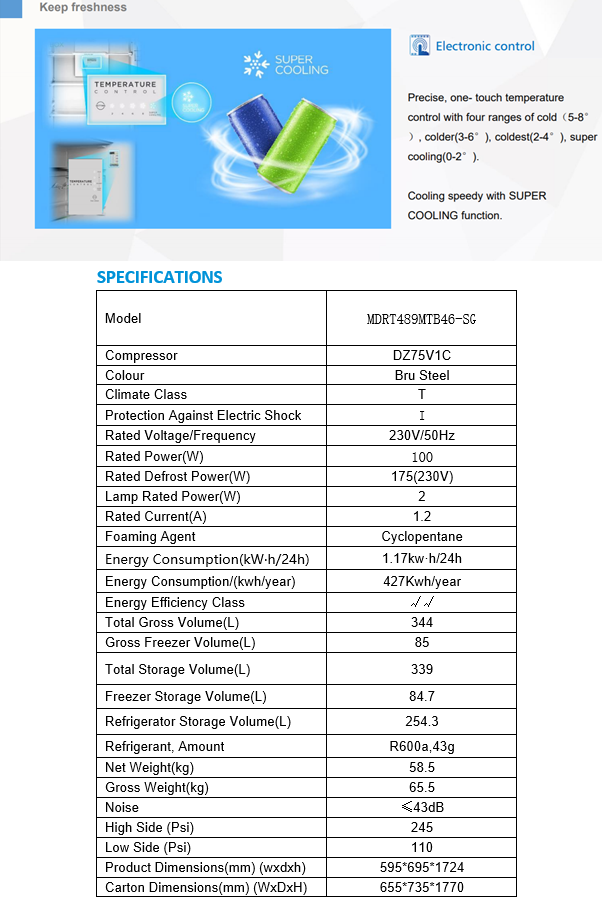 (Bulky) MIDEA MDRT489MTB46-SG 339L STAINLESS STEEL TOP FREEZER REFRIGERATOR