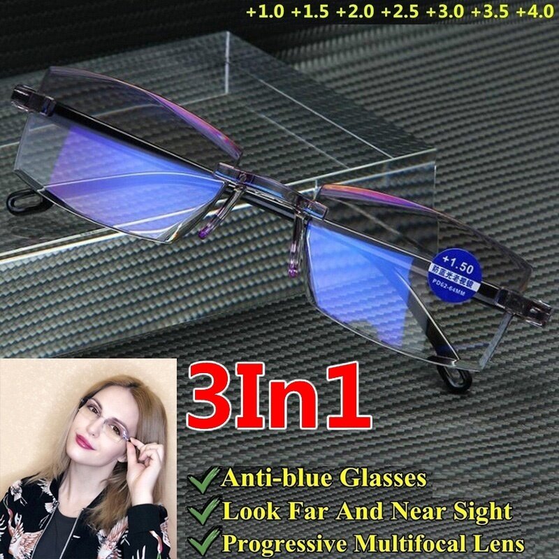 2021 Reading Glasses Men Women Bifocal Far Near Anti Blue Light Magnification Eyewear Presbyopic Glasses