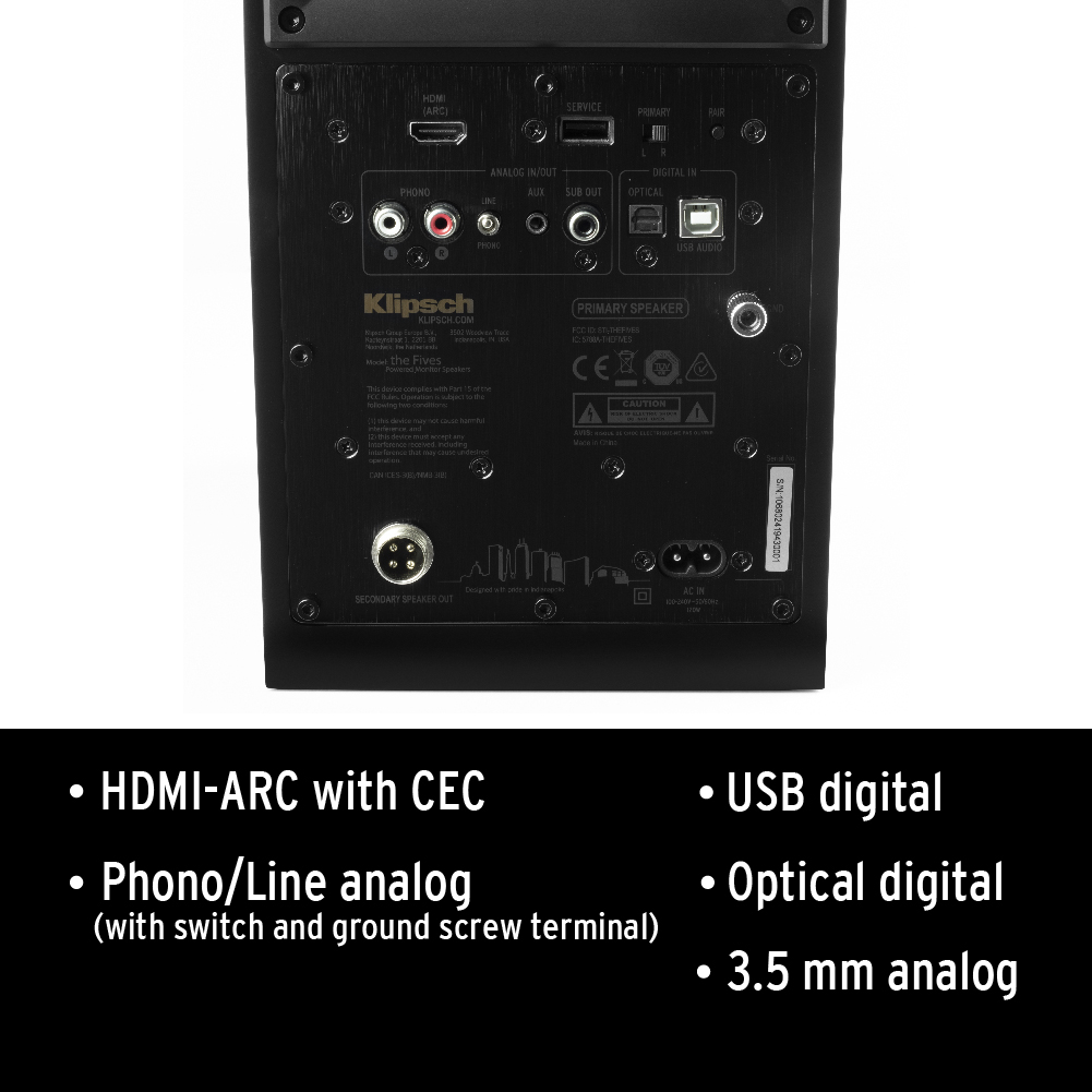 Klipsch The Fives Active Bluetooth Monitor Bookshelf Speaker - Soundbar Alternative For TV